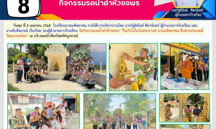 โรงเรียนนามนพิทยาคม จัดกิจกรรมรดน้ำดำหัวขอพร “รื่นเริงใจในวันสงกรานต์ นามนพิทยาคม สืบสานประเพณีวัฒนธรรมไทย”