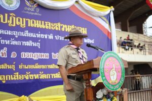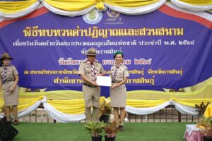 ในการนี้นายสนั่น พงษ์อักษร ผู้ว่าราชการจังหวัดกาฬสินธุ์/ผู้อำนวยการลูกเสือจังหวัดกาฬสินธุ์ ได้มอบเกียรติบัตรแก่หน่วยงานและสถานศึกษาที่ให้การสนับสนุนการจัดพิธีทบทวนคำปฏิญาณและสวนสนามทั้ง 22แห่งด้วย