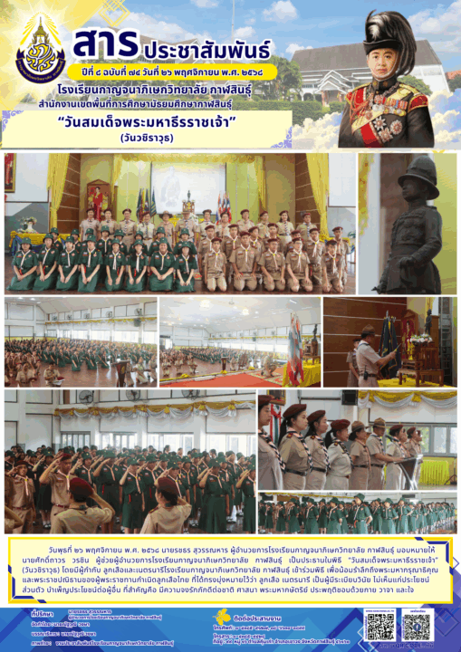 โรงเรียนกาญจนาภิเษกวิทยาลัย กาฬสินธุ์ จัดพิธี “วันสมเด็จพระมหาธีรราชเจ้า” (วันวชิราวุธ) ประจำปีการศึกษา ๒๕๖๘