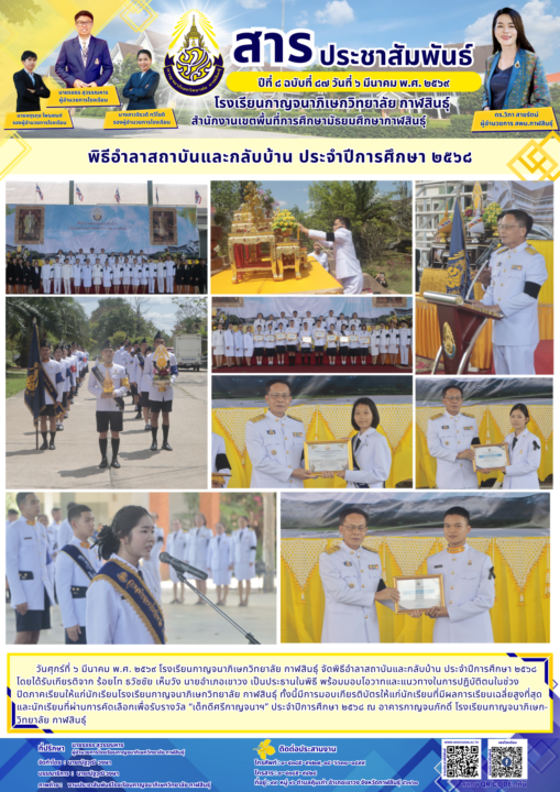 โรงเรียนกาญจนาภิเษกวิทยาลัย กาฬสินธุ์ จัดพิธีอำลาสถาบันและกลับบ้าน ประจำปีการศึกษา ๒๕๖๘