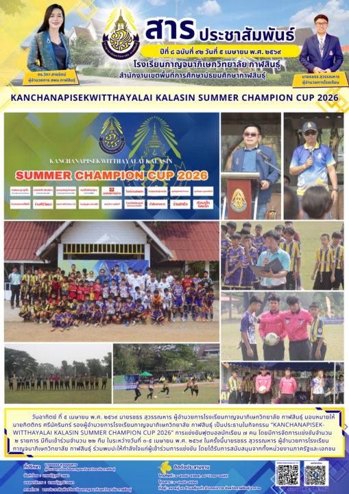 โรงเรียนกาญจนาภิเษกวิทยาลัย กาฬสินธุ์ จัดกิจกรรม “KANCHANAPISEKWITTHAYALAI KALASIN SUMMER CHAMPION CUP 2026”