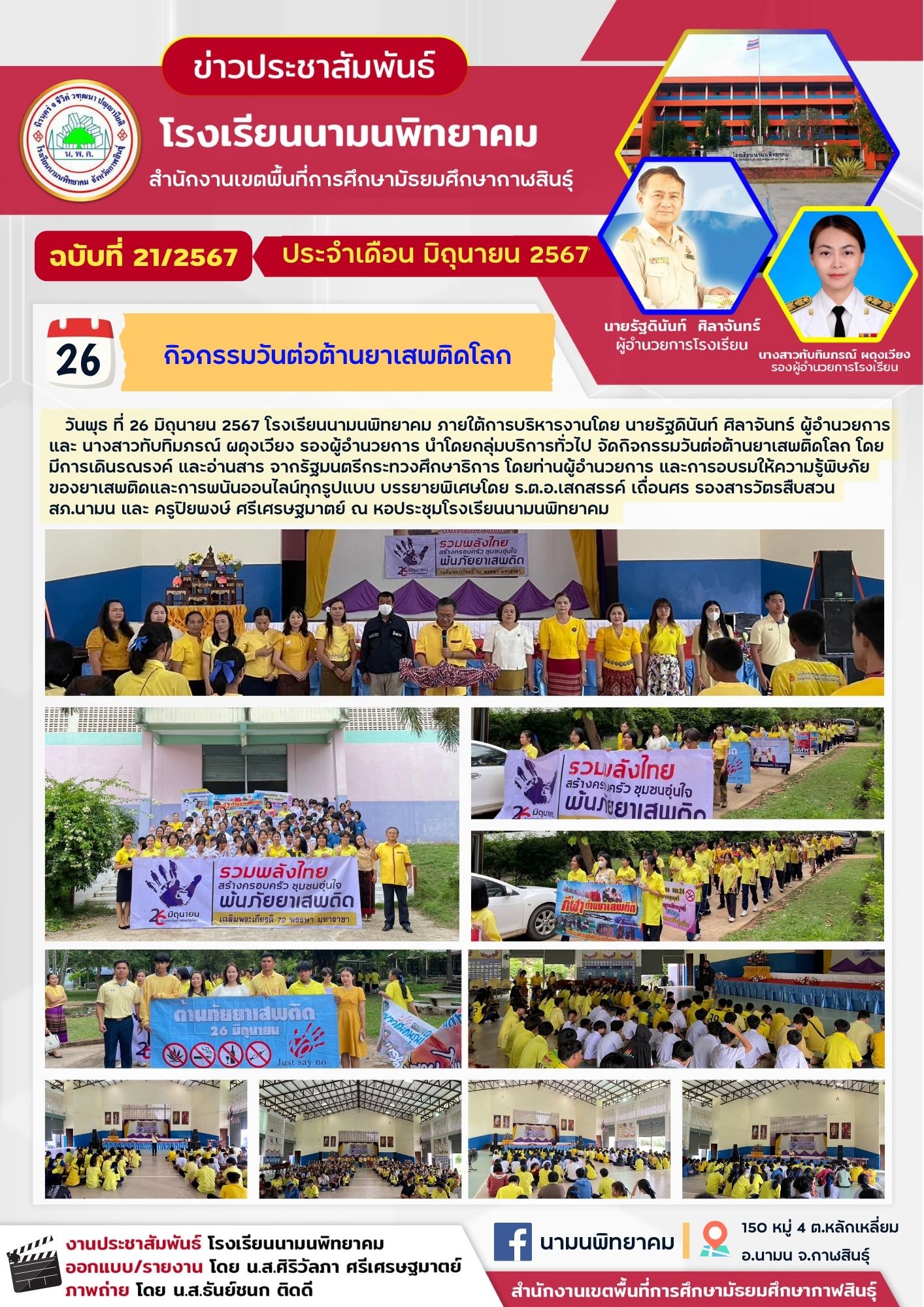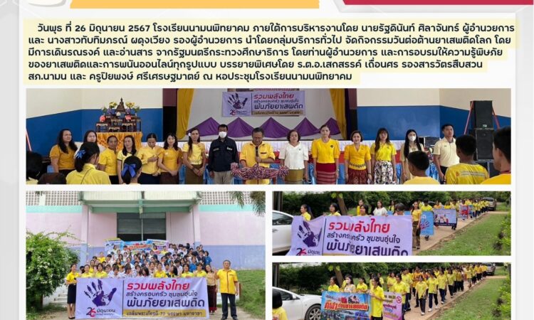 โรงเรียนนามนพิทยาคม จัดกิจกรรมวันต่อต้านยาเสพติดโลก ประจำปีการศึกษา 2567