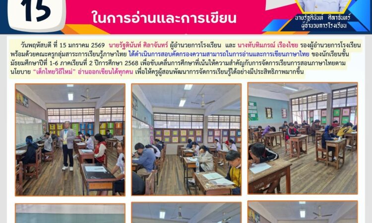 โรงเรียนนามนพิทยาคม ดำเนินการสอบคัดกรองความสามารถในการอ่านและการเขียนภาษาไทย ของนักเรียนชั้นมัธยมศึกษาปีที่ 1-6 ภาคเรียนที่ 2 ปีการศึกษา 2568 มกราคม 15, 2026 นามนพิทยาคม Uncategorized