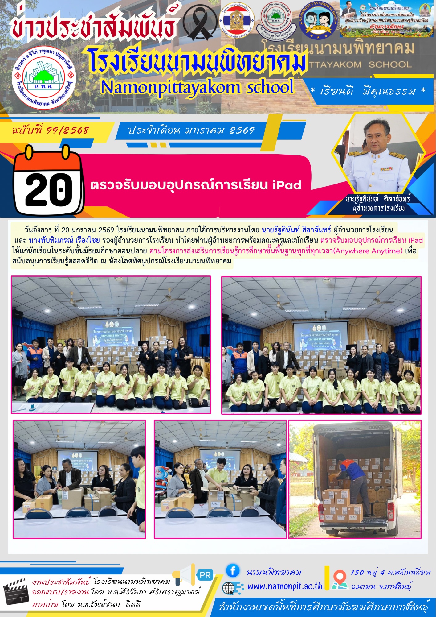 โรงเรียนนามนพิทยาคม ตรวจรับมอบอุปกรณ์การเรียน iPad ตามโครงการส่งเสริมการเรียนรู้การศึกษาขั้นพื้นฐานทุกที่ทุกเวลา(Anywhere Anytime)
