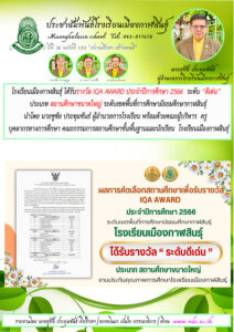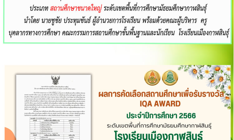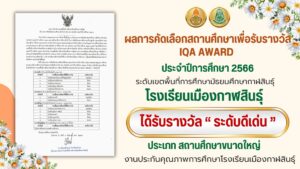 โรงเรียนเมืองกาฬสินธุ์ ได้รับรางวัล IQA AWARD ประจำปีการศึกษา 2566 ระดับ ดีเด่น