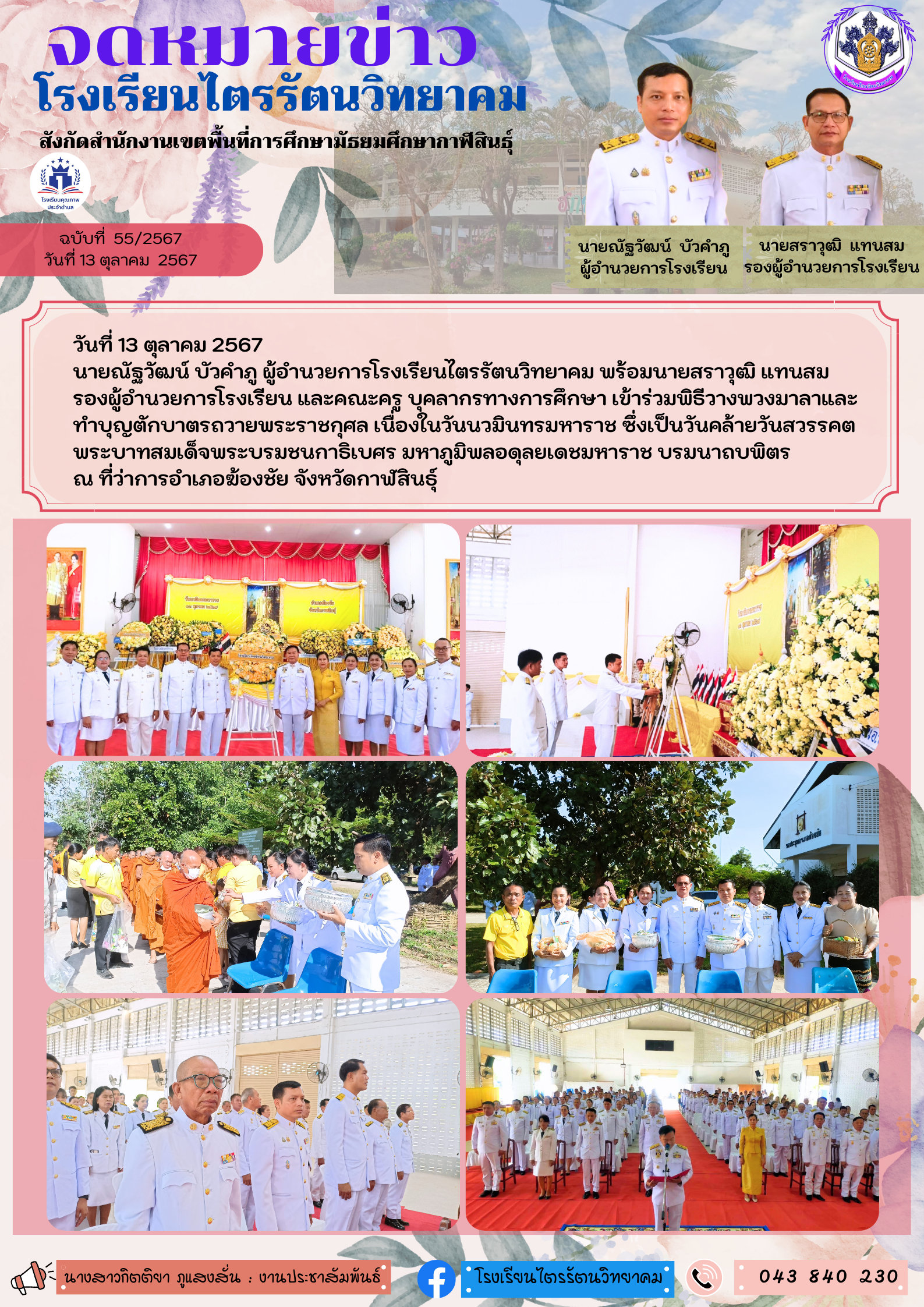 โรงเรียนไตรรัตนวิทยาคม ร่วมกิจกรรมเนื่องใน”วันนวมินทรมหาราช”