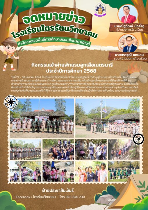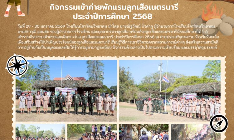 โรงเรียนไตรรัตนวิทยาคม จัดกิจกรรมเข้าค่ายพักแรมลูกเสือเนตรนารี ประจำปีการศึกษา 2568 กุมภาพันธ์ 3, 2026 ไตรรัตนวิทยาคม ข่าวสารโรงเรียนในสังกัด
