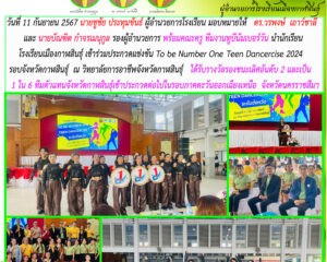นักเรียนโรงเรียนเมืองกาฬสินธุ์ ได้รับรางวัลรองชนะเลิศอันดับ 2 ในการประกวด To Be Number One Teen Dancercise 2024 สนับสนุนโดย นายชูชัย ประทุมขันธ์ ผอ.รร.