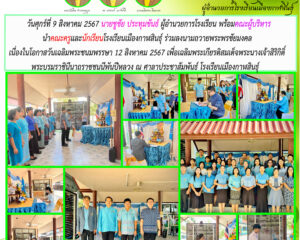 นายเฉลิมพล ถิ่นละออ รองผอ.รร. นำคณะครูโรงเรียนเมืองกาฬสินธุ์ เข้าร่วมกิจกรรมเฉลิมพระเกียรติวันแม่แห่งชาติ 12 สิงหาคม 2567 สนับสนุนโดย นายชูชัย ประทุมขันธ์ ผู้อำนวยการโรงเรียน