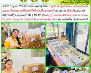 โรงเรียนเมืองกาฬสินธุ์ รับมอบหนังสือภาษาเกาหลีพร้อมคู่มือ โดย นายชูชัย ประทุมขันธ์ ผู้อำนวยการโรงเรียน กรกฎาคม 14, 2024 เมืองกาฬสินธุ์ ข่าวสารโรงเรียนในสังกัด Read more