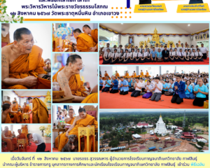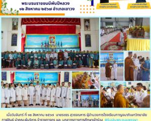 โรงเรียนกาญจนาภิเษกวิทยาลัย กาฬสินธุ์ ร่วมพิธีเฉลิมพระชนมพรรษา สมเด็จพระนางเจ้าสิริกิติ์ พระบรมราชินีนาถ พระบรมราชชนนีพันปีหลวง และพิธียกเสาเอก เสาโท พระวิหารวิหารไม้พระราชวัชรธรรมโสภณ ๑๒ สิงหาคม ๒๕๖๗ ณ วัดพระธาตุหมื่นหิน อำเภอเขาวง จังหวัดกาฬสินธุ์