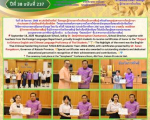 “Muangkalasin School Students Honored for Excellence in English & Chinese Proficiency Project”