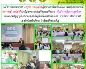 โรงเรียนเมืองกาฬสินธุ์ จัดกิจกรรมการปฐมนิเทศและลงนามในสัญญากู้ยืมเงินกองทุนเงินฯ (กยศ.) สนับสนุนโดย นายชูชัย ประทุมขันธ์ ผอ.รร.