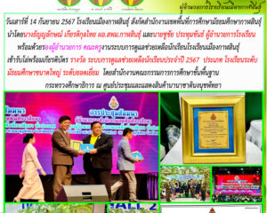 โรงเรียนเมืองกาฬสินธุ์ รับรางวัลระบบการดูแลช่วยเหลือนักเรียน ประจำปีการศึกษา 2567 ระดับมัธยมศึกษาขนาดใหญ่ ระดับยอดเยี่ยม สนับสนุนโดย นายชูชัย ประทุมขันธ์ ผอ.รร.