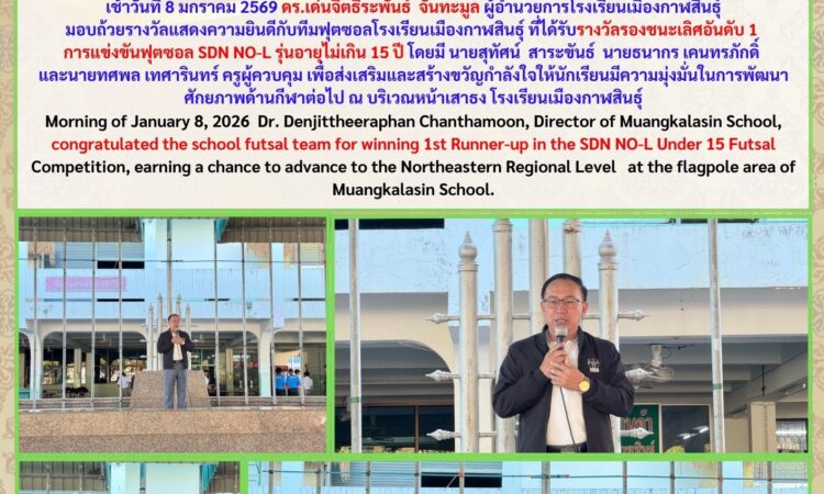 Muangkalasin School Futsal Team Secures 1st Runner-up in SDN NO-L U15, Advances to Regional Draw มกราคม 8, 2026 เมืองกาฬสินธุ์ ข่าวสารโรงเรียนในสังกัด