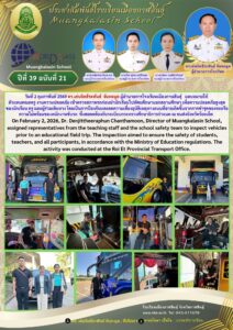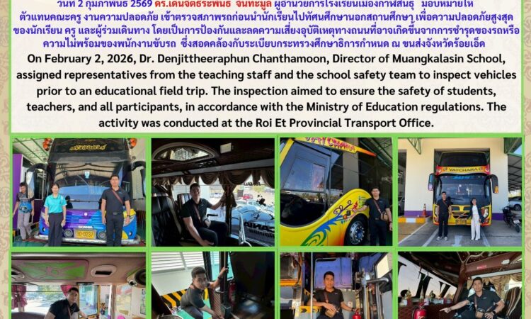 Muangkalasin School Conducts Vehicle Inspection for Student Field Trip Safety กุมภาพันธ์ 2, 2026 เมืองกาฬสินธุ์ ข่าวสารโรงเรียนในสังกัด
