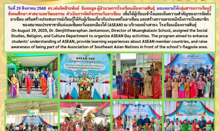 Muangkalasin School Holds ASEAN Day Activities to Promote Regional Awareness สิงหาคม 30, 2025 เมืองกาฬสินธุ์ ข่าวสารโรงเรียนในสังกัด