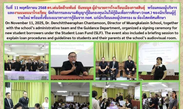 Muangkalasin School Holds Student Loan Signing Ceremony for New Borrowers พฤศจิกายน 11, 2025 เมืองกาฬสินธุ์ ข่าวสารโรงเรียนในสังกัด