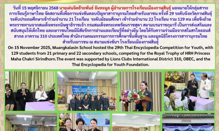 พฤศจิกายน 15, 2025 เมืองกาฬสินธุ์ ข่าวสารโรงเรียนในสังกัด