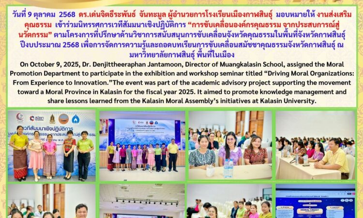 Muangkalasin School Joins Moral Organization Innovation Seminar ตุลาคม 10, 2025 เมืองกาฬสินธุ์ ข่าวสารโรงเรียนในสังกัด