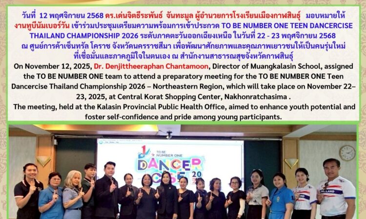 Muangkalasin School Prepares for TO BE NUMBER ONE Teen Dancercise 2026 Northeast Championship พฤศจิกายน 13, 2025 เมืองกาฬสินธุ์ ข่าวสารโรงเรียนในสังกัด