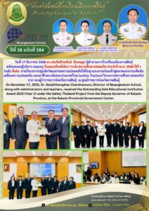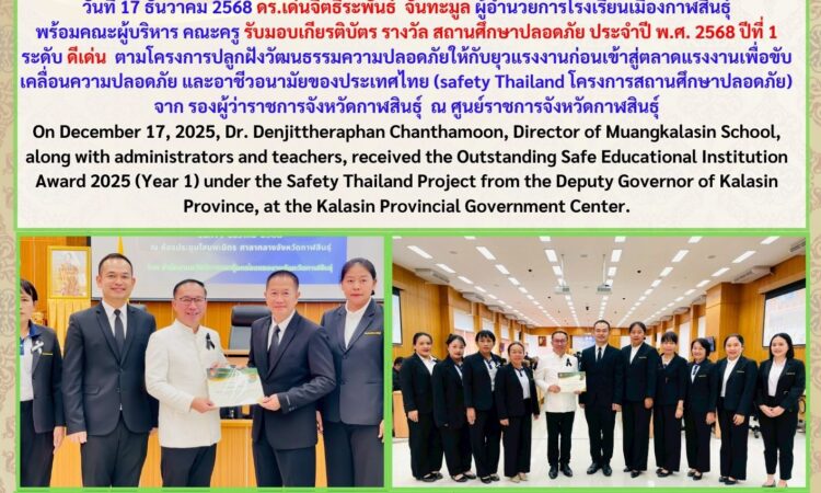 Muangkalasin School Receives Outstanding Safe Educational Institution Award 2025 ธันวาคม 17, 2025 เมืองกาฬสินธุ์ ข่าวสารโรงเรียนในสังกัด
