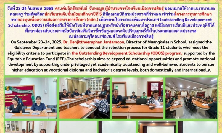 Muangkalasin School Selects Students for ODOS Scholarship Program กันยายน 25, 2025 เมืองกาฬสินธุ์ ข่าวสารโรงเรียนในสังกัด