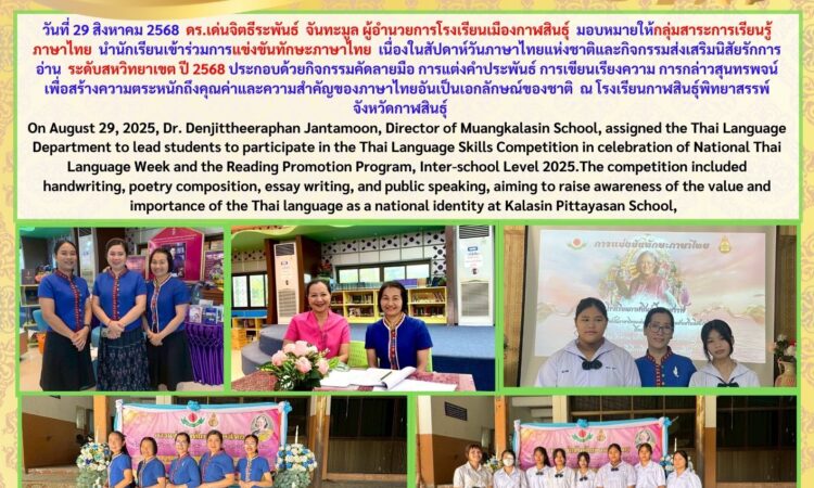 Muangkalasin School Students Compete in Thai Language Skills Contest for National Thai Language Week 2025 สิงหาคม 29, 2025 เมืองกาฬสินธุ์ ข่าวสารโรงเรียนในสังกัด