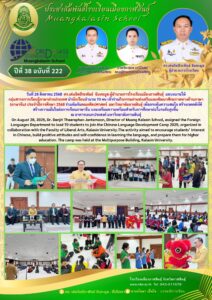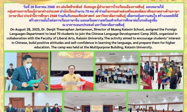 Muangkalasin School Students Join Chinese Language Development Camp at Kalasin University สิงหาคม 29, 2025 เมืองกาฬสินธุ์ ข่าวสารโรงเรียนในสังกัด