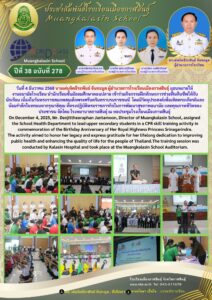 Muangkalasin School Students Join CPR Training in Honor of Princess Srinagarindra’s Birthday ธันวาคม 4, 2025 เมืองกาฬสินธุ์ ข่าวสารโรงเรียนในสังกัด