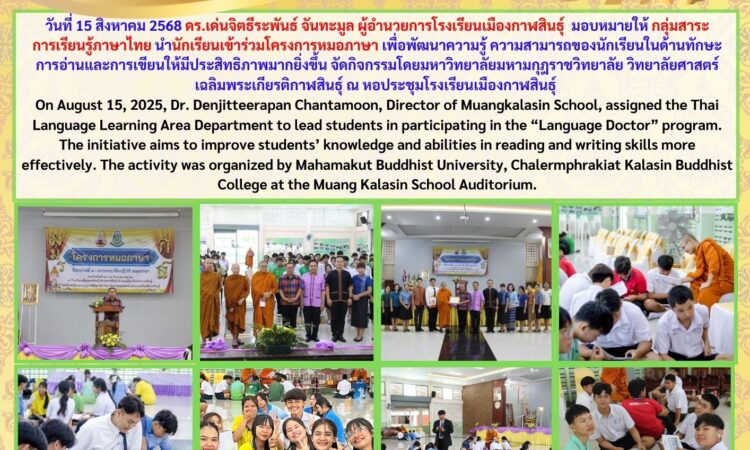 Muangkalasin Students Join “Language Doctor” Program to Enhance Reading and Writing Skills สิงหาคม 15, 2025 เมืองกาฬสินธุ์ ข่าวสารโรงเรียนในสังกัด