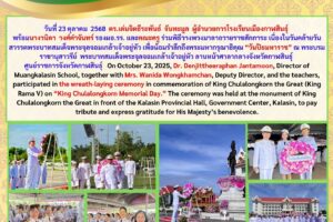 โรงเรียนกาญจนาภิเษกวิทยาลัย กาฬสินธุ์ เข้าร่วมกิจกรรมน้อมรำลึกในพระมหากรุณาธิคุณ เนื่องในวันคล้ายวันสวรรคตพระบาทสมเด็จพระจุลจอมเกล้าเจ้าอยู่หัว ณ ที่ว่าการอำเภอเขาวง อำเภอเขาวง จังหวัดกาฬสินธุ์