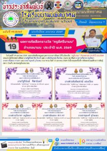 ผลการคัดเลือกครูและบุคลากรทางการศึกษา โรงเรียนนามนพิทยาคม ได้รับเลือกเป็น “ครูดีนามน” อำเภอนามน ประจำปี พ.ศ.2569