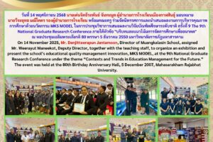 เผยแพร่ผลงานทางวิชาการ การพัฒนารูปแบบการบริหารสถานศึกษาฐานดุลยภาพสูงองค์กรคุณภาพทางการศึกษาแห่งความสุข ของโรงเรียนยางตลาดวิทยาคาร