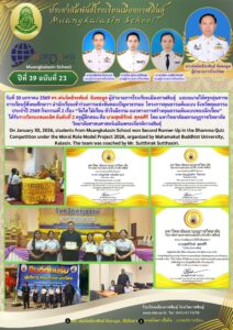 Students from Muangkalasin School Win 2nd Runner-Up in Dhamma Quiz Competition at Provincial Moral Excellence Project 2026 กุมภาพันธ์ 3, 2026 เมืองกาฬสินธุ์ ข่าวสารโรงเรียนในสังกัด